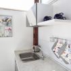 L’appartamento mansardato localizzato al 3° piano di un piccolo edificio, che gode di una splendida vista mare, è composto da un soggiorno spazioso dotato di un divano letto e da un cucinino ricavato in un ambiente separato.