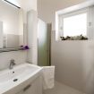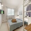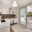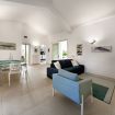 The interior of the villa consists of two double bedrooms, one single bedroom, two bathrooms, the kitchen and the living room with large windows.
