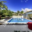 The garden is refined with tropical plants and lawn. The beautiful swimming pool is an excellent alternative for days when the beaches are more crowded or simply for the lovers of comfort, with the opportunity to sunbathe in peace on comfortable beds by the pool.