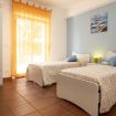 The sleeping area has a double bedroom and a bedroom with two single beds.